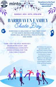 Enjoy some music, an entertainer, food, crafts, and of course- skating! (20 minute blocks of ice time, limited capacity and does book up early on – just to warn you!).